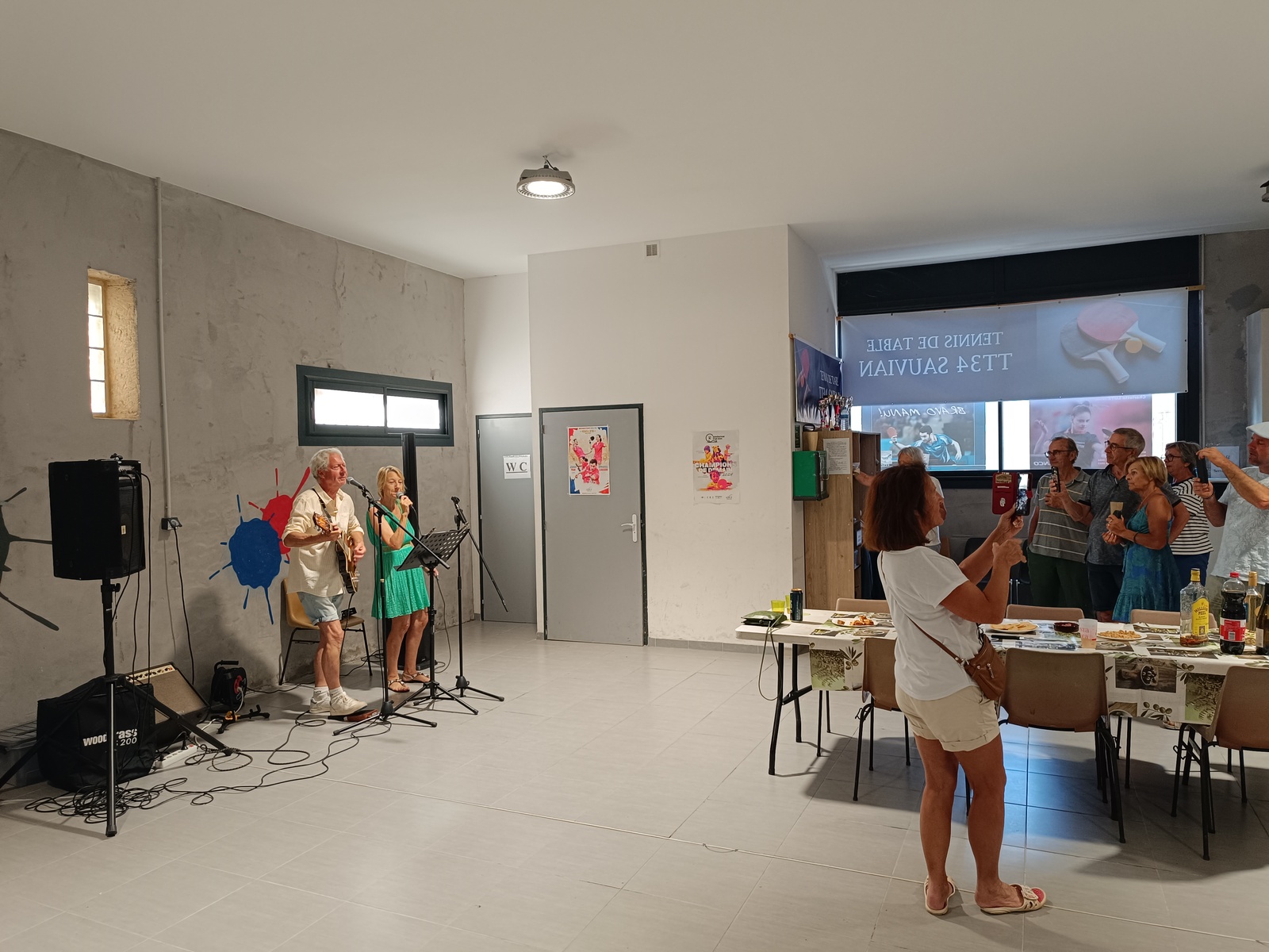 Un grand merci à Corinne et à Jean Claude qui, durant cet apéritif et ce repas, ont agrémenté ce moment festif d'une prestation musicale de qualité.