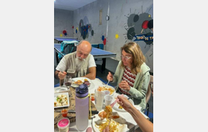 L'après-midi s'est poursuivi dans un esprit d'amitié avec un délicieux apéritif suivi d'un repas chaleureux façon "Auberge Espagnole" à notre salle d'entraînement. Quel plaisir de partager les mets préparés par chacun ! La diversité des plats était à l'image de la richesse de nos échanges.