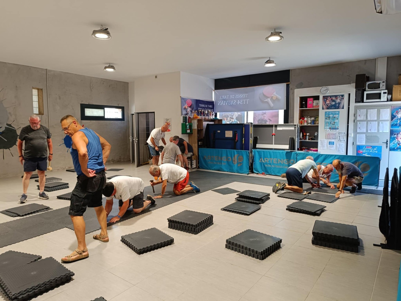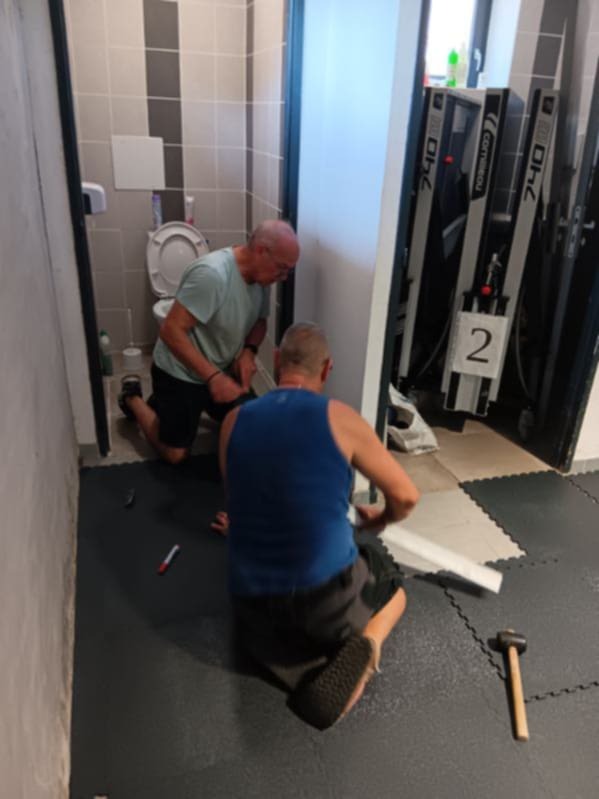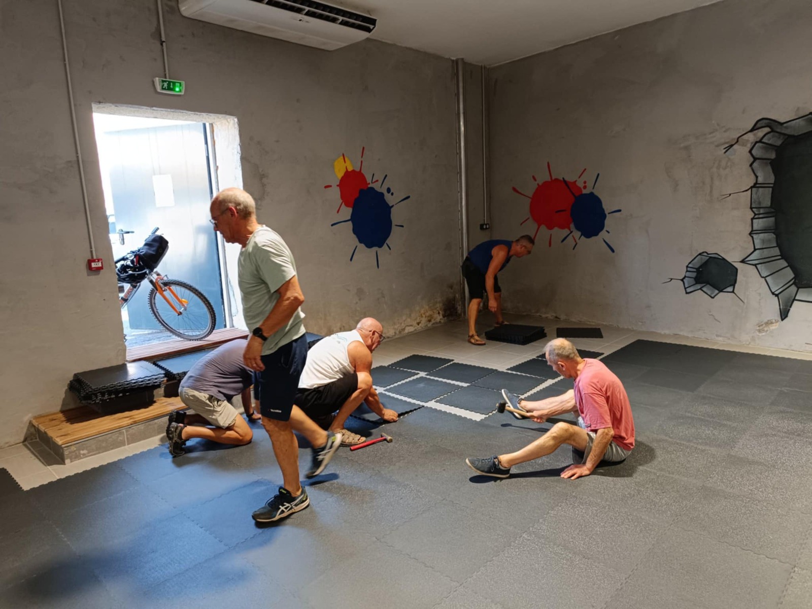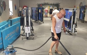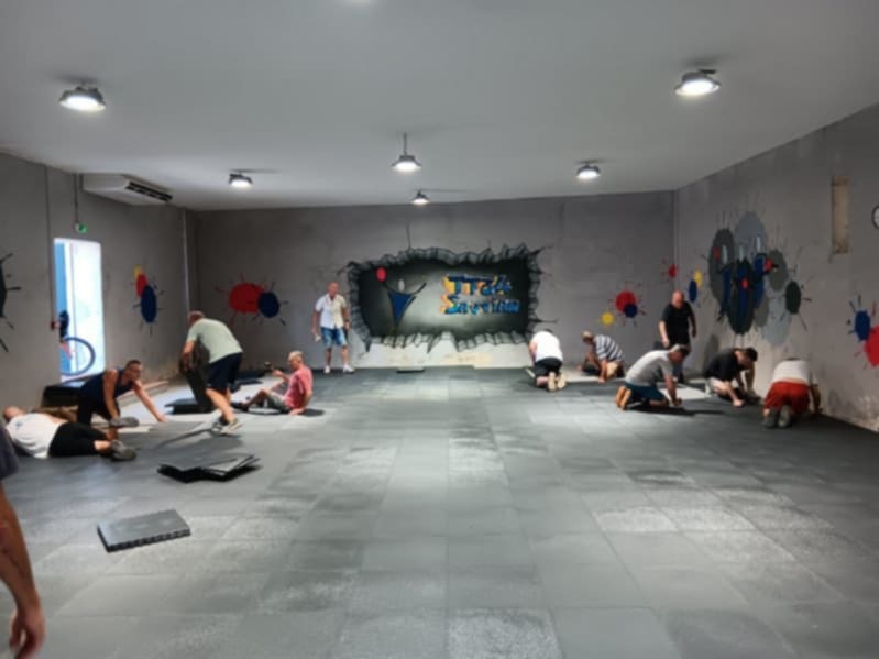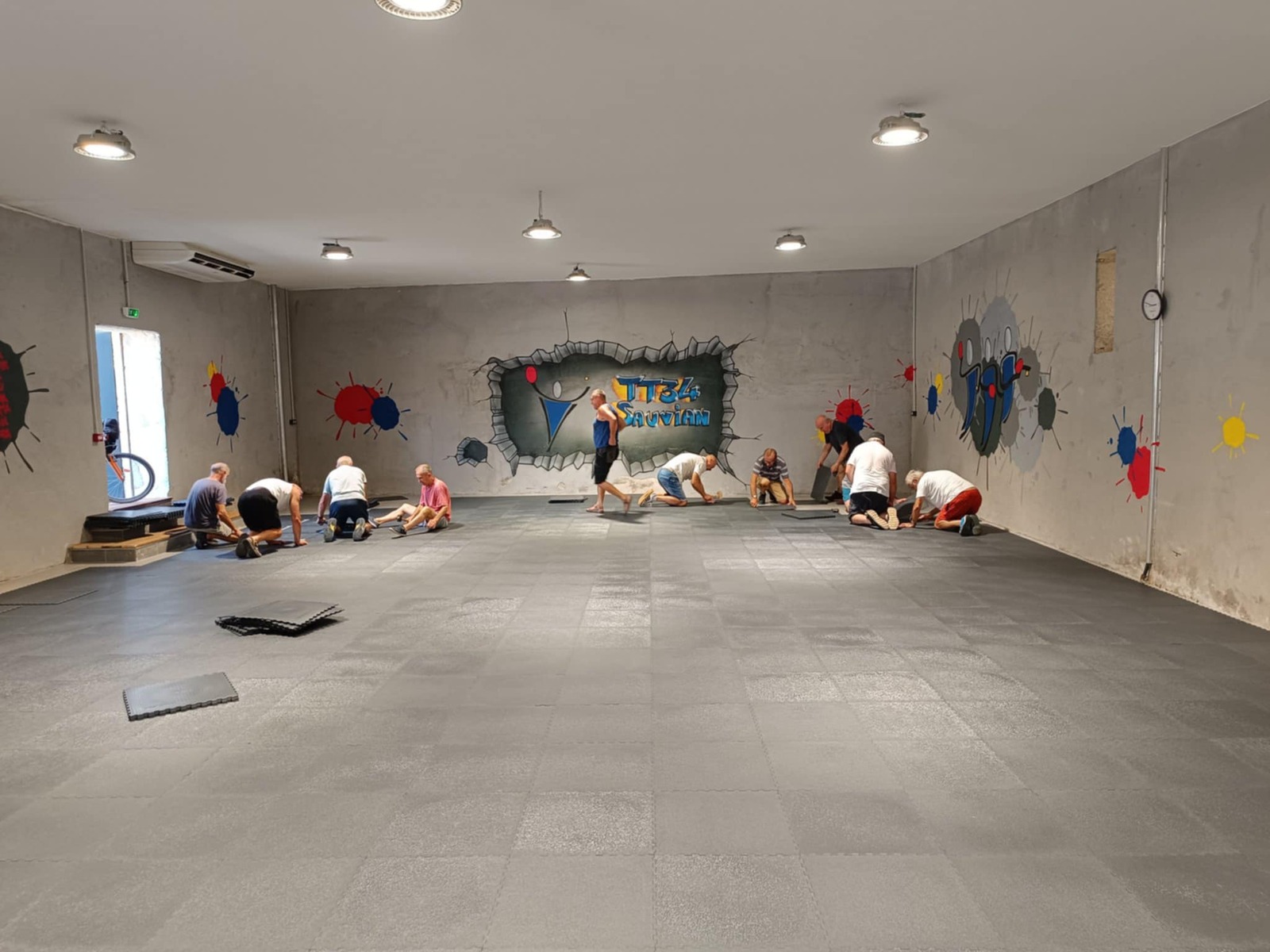 Vendredi 08/08 nettoyage total de la salle avec mise en place en petit tas des dalles afin qu'elles soient à la même température que la salle (pendant 24h).