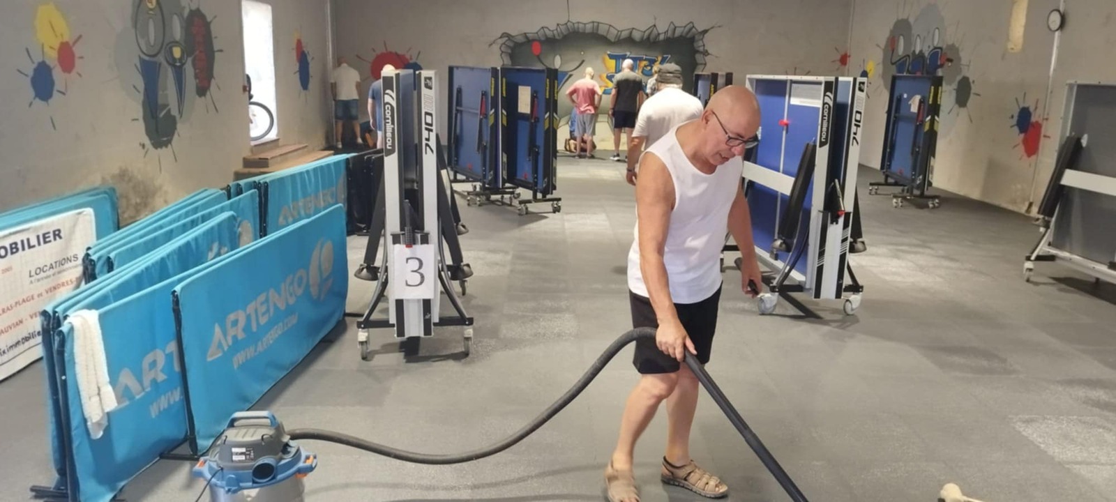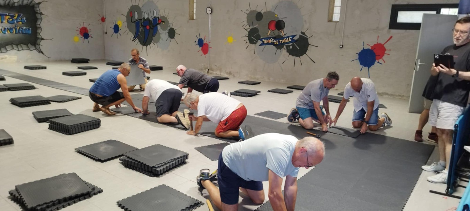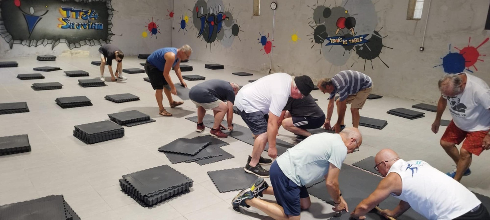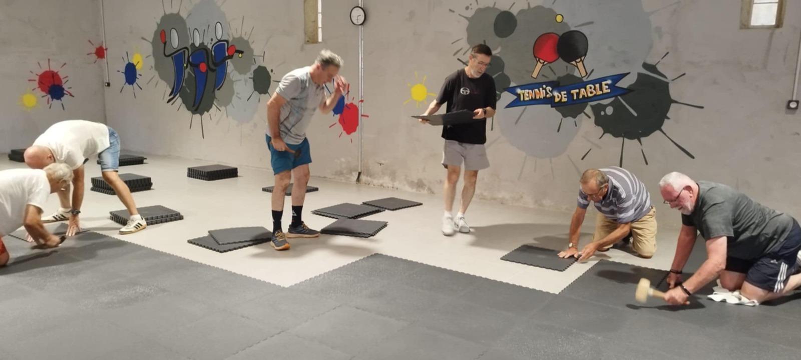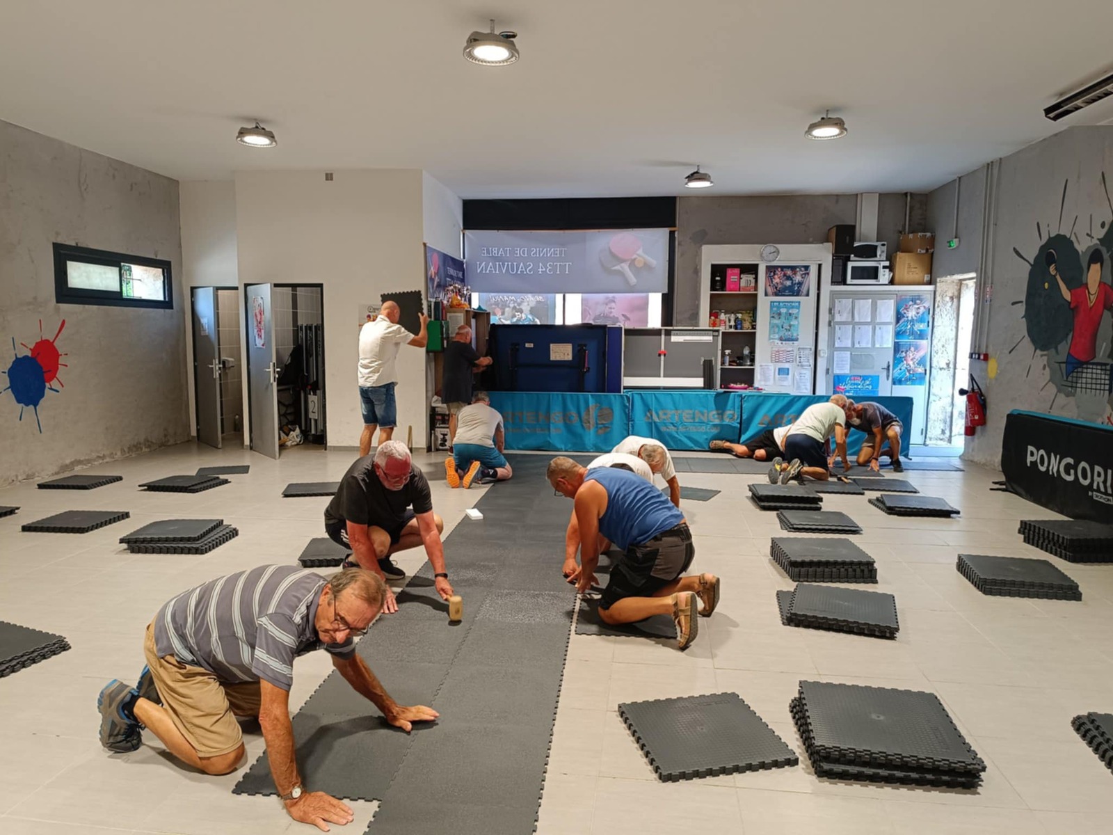 Vendredi 08/08 nettoyage total de la salle avec mise en place en petit tas des dalles afin qu'elles soient à la même température que la salle (pendant 24h).